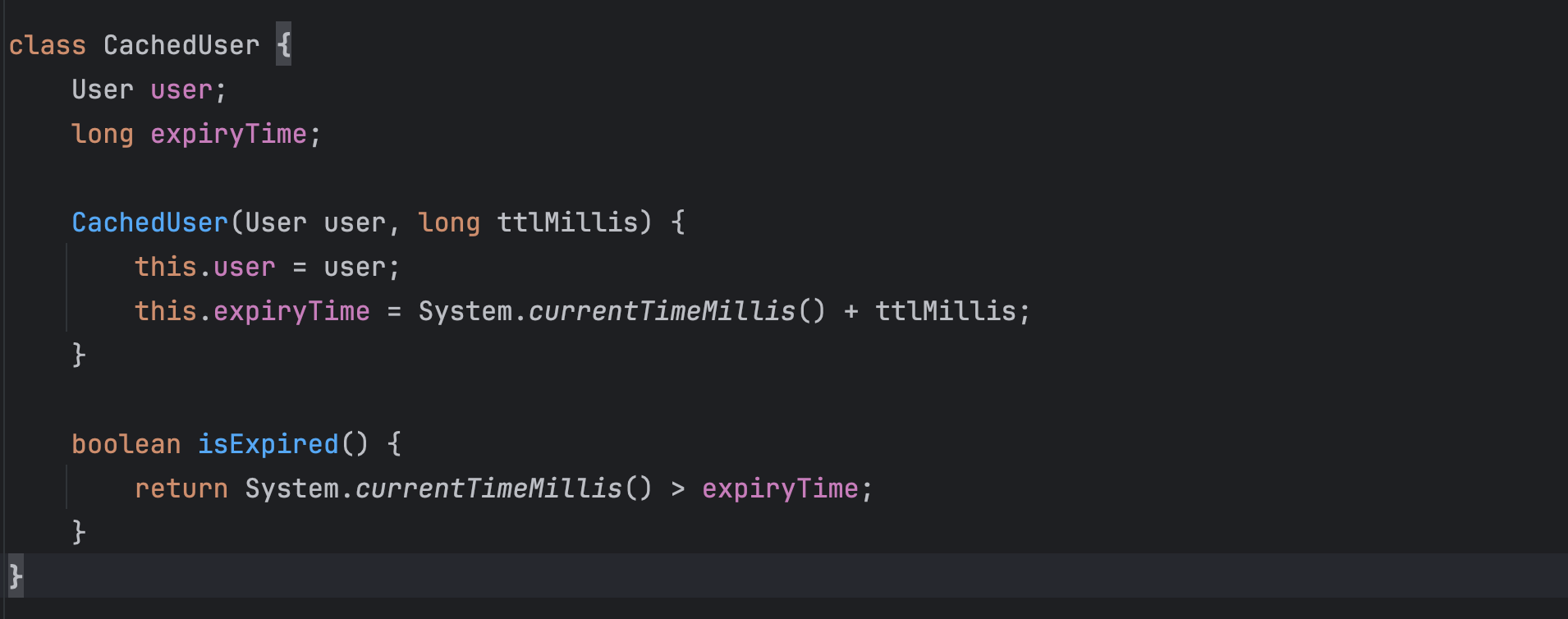 CachedUser class stores the expiry time and implements the logic for expiry.