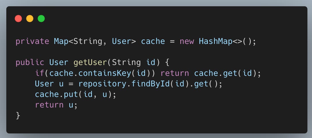 If passed userId exists in the cache and it’s not expired, we return the user without hitting the database. But if it does exist, we query the database and get the user, add them to the cache along with TTL, and return the fresh user.