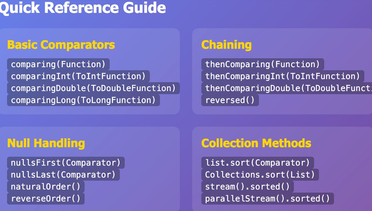 Collections.sort()- they offer elegant, readable, and performant solutions for even the most complex sorting requirements.